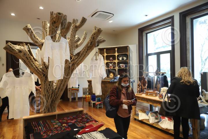 CIUDAD DE MÉXICO, 18NOVIEMBRE2021.- Delfina Gómez, secretaria de Educación Pública (SEP); Aurelia Gómez Jiménez, maestra artesana; Alejandra Frausto, secretaria de Cultura; Héctor Tamayo, maestro artesano, y Susana Harp, senadora de Morena, durante la inauguración "Original, Encuentro de Arte Textil Mexicano", en el Complejo Cultural Los Pinos. FOTO: EDGAR NEGRETE/CUARTOSCURO.COM