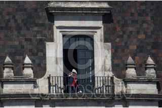 TOLUCA, ESTADO DE MÉXICO, 18NOVIEMBRE2021.- Trabajadores realizan labores de limpieza en las ventanas principales de Palacio de Gobierno del Estado de México. FOTO: CRISANTA ESPINOSA AGUILAR /CUARTOSCURO.COM