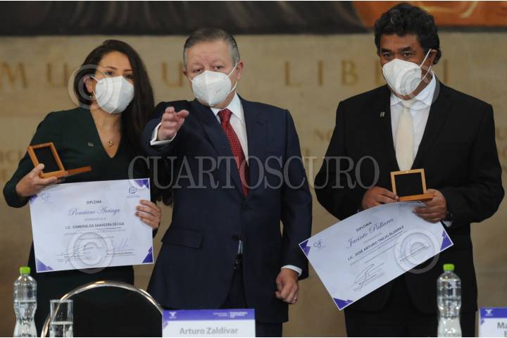 CIUDAD DE MÉXICO, 18NOVIEMBRE2021.- La Suprema Corte de Justicia de la Nación (SCJN) en nombre de su ministro presidente, Arturo Zaldivar, entregó las medallas Ponciano Arriaga y Jacinto Pallares a dos abogados que fueron reconocidos por su labor en el apoyo a las personas que requerían servicios judiciales. FOTO: DANIEL AUGUSTO /CUARTOSCURO.COM