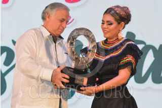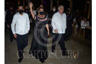 MÉRIDA, YUCATÁN, 18NOVIEMBRE2021.- Evelyn Salgado, gobernadora de Guerrero, y Miguel Torruco, secretario de Turismo, y , encabezaron el pase de estafeta del Tianguis Turístico México que para el próximo año se llevará a cabo en el estado de Guerrero. FOTO: MARIO JASSO/CUARTOSCURO.COM