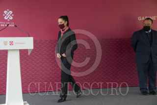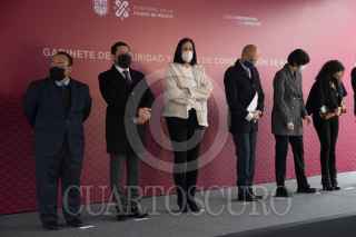 CIUDAD DE MÉXICO. 19NOVIEMBRE2021.- La jefa del Gobierno de la Ciudad, Claudia Sheinbaum Pardo, acompañada de Martí Batres y la Fiscal, Ernestina Godoy encabezaron la ceremonia de Gabinete de Seguridad en la alcaldía Álvaro Obregón, representada de su alcaldesa, Lía Limón, esta mañana en la demarcación. FOTO: VICTORIA VALTIERRA/CUARTOSCURO.COM