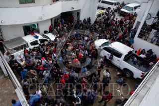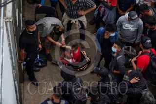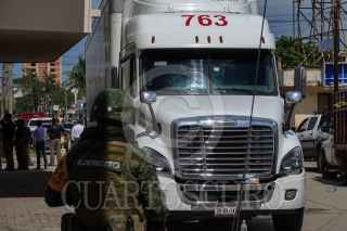 COATZACOALCOS, VERACRUZ, 19NOVIEMBRE2021.- Quinientos migrantes, en su mayoría centroamericanos, fueron ubicados al interior de dos trailers en los límites de Coatzacoalcos y Ixhuatlán del sureste. Las y los indocumentados fueron puestos a disposición del Instituto Nacional de Migración (INM) para ser trasladados a la estación migratoria de Acayucan, Veracruz y continuar su proceso. FOTO: GALO CAÑAS/CUARTOSCURO.COM