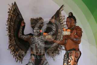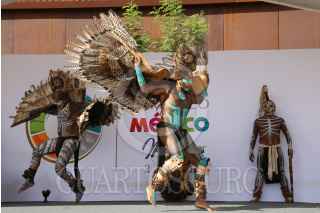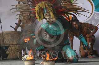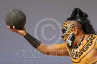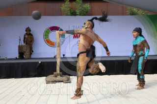 MÉRIDA, YUCATÁN, 19NOVIEMBRE2021.- Hoy por la tarde se dio por finalizada la 45 edición del Tianguis Turístico México 2021. Cómo parte de las actividades de clausura un grupo de jóvenes Mayas realizó una representación del Juego de Pelota “Pok ta Pok” en el Centro de Convenciones Yucatán Siglo XXI. FOTO: MARTÍN ZETINA / CUARTOSCURO.COM