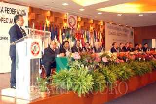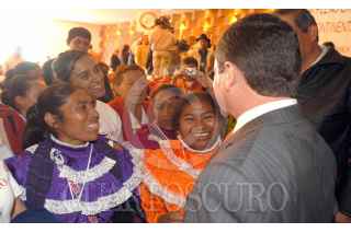 MÉXICO D.F. 26OCTUBRE2006.- El presidente del CEN del PRI Mariano Palacios asistió a la Secretaría de Relaciones Exteriores a la inaguración de la 147 reunión del comité ejecutívo de la Federacion Internacional de productores agropecuarios, organizada por la CNC, FIFA,IFAP y encabezada por su Presidente Senador Heladio Ramirez Lopez . Unas mujeres indígenas, se acercan a los dirigentes y comentas sus problemas con ellos. FOTO:FRANCISCO MARTINEZ/ CUARTOSCURO.COM