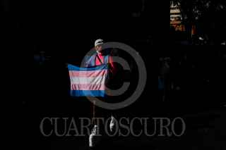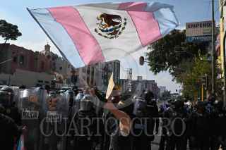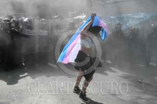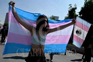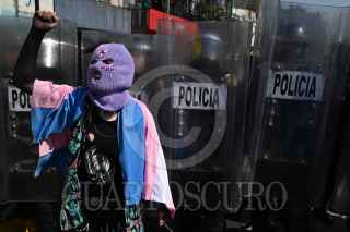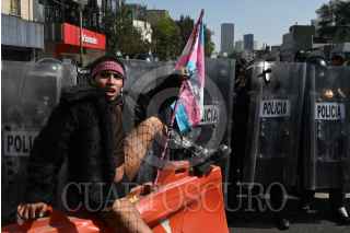 CIUDAD DE MÉXICO, 20NOVIEMBRE2021.- Mujeres y hombres transgénero se manifestaron esta tarde para conmemorar el día de la Remembranza Transgénero, con el objetivo de erradicar la violencia contra este sector de la sociedad. Los manifestantes marcharon desde el metro Revolución con destino a la Glorieta de Insurgentes pero elementos de la policía capitalina impidieron su paso encapsulado la manifestación. FOTO: DANIEL AUGUSTO /CUARTOSCURO.COM