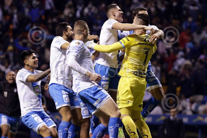 PUEBLA, PUEBLA, 20NOVIEMBRE2021.- En partido de repechaje entre Club Puebla y las Chivas de Guadalajara empataron 2-2, por lo que tuvieron que irse a penales, en donde los poblanos se impusieron 6-5, para poder asi acceder a la liguilla del torneo Grita México Apertura 2021 de la Liga BBVA MX, encuentro celebrado en el estadio Cuauhtémoc. FOTO: MIREYA NOVO/CUARTOSCURO.COM