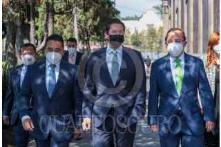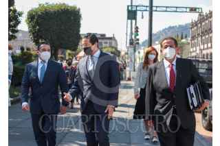 TOLUCA, ESTADO DE MÉXICO, 21NOVIEMBRE2021.- Rodrigo Jarque Lira, Secretario de Finanzas del Estado de México acudió a entregar el proyecto de Paquete Fiscal 2022 a los integrantes de la Junta de Coordinación Política de la LXI Legislatura local en donde se solicita un presupuesto de 326 mil millones de pesos. FOTO: CRISANTA ESPINOSA AGUILAR /CUARTOSCURO.COM