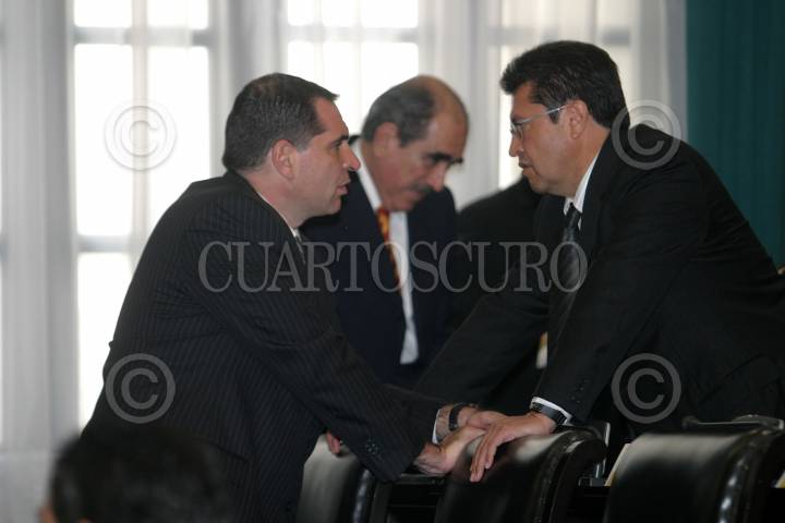 MEXICO, D.F. 26OCTUBRE2006.- Los senadores Ramón Muñoz Guitiérrez y Augusto César Leal Angulo conversan durante la sesión ordinaria. FOTO: NELLY SALAS/CUARTOSCURO.COM
