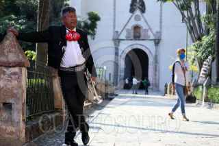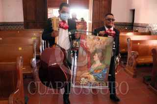 CUERNAVACA, MORELOS, 22NOVIEMBRE2021.- Un pequeño grupo de mariachis realizo una caminata por la calles del centro de la ciudad hasta la catedral para celebrar a Santa Cecilia, patrona de los músicos. Muy pocos instrumentistas acudieron a esta celebración. FOTO: MARGARITO PÉREZ RETANA / CUARTOSCURO.COM