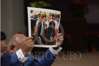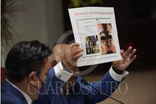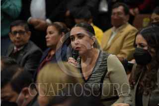 XALAPA, VERACRUZ, 22NOVIEMBRE2021.- Eric Cisneros Burgos, secretario de Gobierno, compareció ante el Congreso del Estado, durante su intervención mostró una imagen de Rogelio Franco, quien fungió como secretario de Gobierno en el período de Miguel Ángel Yunes, quien fue señalado de haber golpeado a su ex esposa, esto ante los cuestionamientos de la diputada Anilú Ingram Vallines de que en el interior de la Secretaría de Gobierno hay varias denuncias de acoso sexual y laborar, el funcionario rechazo las acusaciones y afirmó en esas cosas se terminaron en Veracruz, sin aclarar de fondo la pregunta. FOTO: YERANIA ROLÓN/CUARTOSCURO.COM