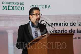 CIUDAD DE MÉXICO, 22NOVIEMBRE2021.- José Mariano Leyva, director de la Biblioteca de México y Vasconcelos; Rodrigo Borja Torres, director general de Bibliotecas; María Vázquez Valdés, directora de Bibliotecas y Archivos de la Cámara de Diputados; Porfirio Tamez Avantes, director de la Biblioteca Lerdo de Tejada, durante la conmemoración de los 75 años de la Biblioteca de México y 15 años de la Biblioteca de México, que se realizó en el Patio Octavio Paz. FOTO: MOISÉS PABLO/CUARTOSCURO.COM