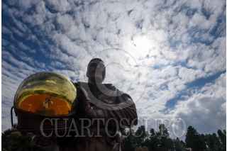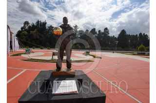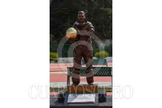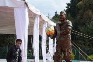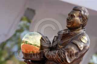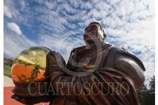 ZINACANTEPEC, ESTADO DE MÉXICO, 23NOVIEMBRE2021.- La estatua del astronauta José Hernández Moreno regreso a la Plaza Estado de México Grandes Valores “Gloria Zarza Guadarrama” después de haber sido robada la madrugada del 26 de junio de este año, este lunes fue develada el reemplazo de la estatua, obra a cargo del escultor Alberto García Nava. FOTO: CRISANTA ESPINOSA AGUILAR /CUARTOSCURO.COM