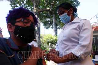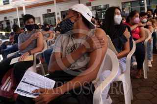 CUERNAVACA, MORELOS, 23NOVIEMBRE2021.- Cientos de jóvenes del rango de edad de 15 a 17 años acudieron a que les aplicaran la vacuna Pfizer contra el Covid-19 en el ayuntamiento de la capital. FOTO: MARGARITO PÉREZ RETANA / CUARTOSCURO.COM