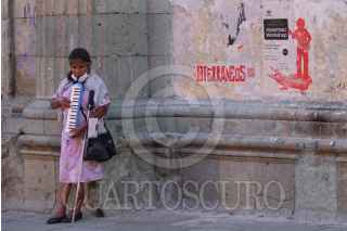 OAXACA, OAXACA, 24NOVIEMBRE2021.- Flor toca la melódica para ganarse unas monedas en el centro de Oaxaca. FOTO: GRACIELA LÓPEZ /CUARTOSCURO.COM