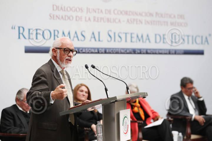 CIUDAD DE MÉXICO, 24NOVIEMBRE2021.- Ricardo Monreal Ávila, presidente de la Junta de Coordinación Política, y Olga Sánchez Cordero, presidenta de la mesa directiva del Senado, durante el foro "Reforma al Sistema de Justicia", en la Casona de Xicoténcatl. Entre los ponentes estuvieron Máximo Carvajal Contreras, Macarita Elizondo Gasperín, Luis Rodríguez Manzanera, y Mireille Roccatti Valázquez, FOTO: SENADO DE LA REPÚBLICA/CUARTOSCURO.COM