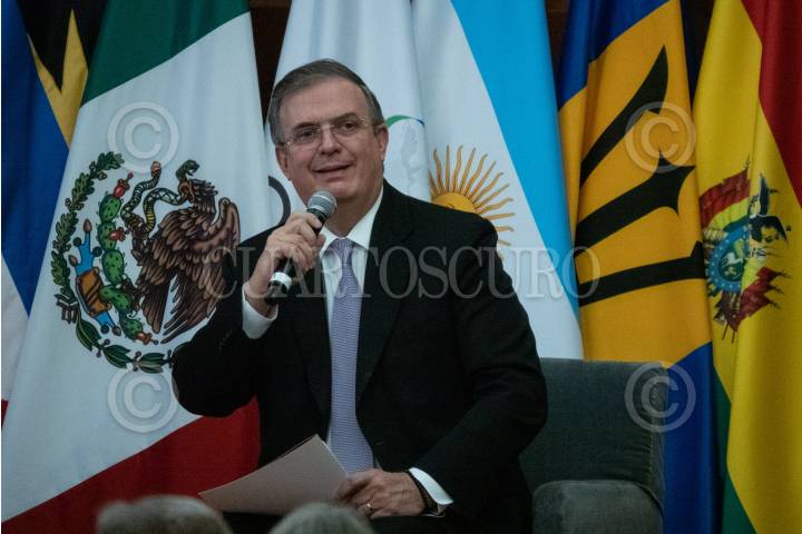 CIUDAD DE MÉXICO, 25NOVIEMBRE2021.- Marcelo Ebrard, secretario de Relaciones Exteriores, encabezó la inauguración del conversatorio con galardonados del Premio Nobel en América Latina en la Secretaría de Relaciones Exteriores (SRE). El evento contó con la presencia de: Laura Sprechman, CEO de la Fundación Nobel Prize Outreach; Rigoberta Menchú, premio Nobel de la Paz en 1992; David Kershenobich, premio Nobel de Medicina 2020; Gautier Mignot, titular de la Delegación de la Unión Europea en México y Premio Nobel de la Paz en 2012, por mencionar algunos. FOTO: GALO CAÑAS/CUARTOSCURO.COM