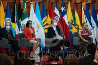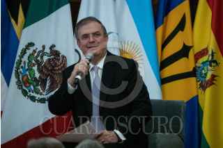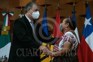 CIUDAD DE MÉXICO, 25NOVIEMBRE2021.- Marcelo Ebrard, secretario de Relaciones Exteriores, encabezó la inauguración del conversatorio con galardonados del Premio Nobel en América Latina en la Secretaría de Relaciones Exteriores (SRE). El evento contó con la presencia de: Laura Sprechman, CEO de la Fundación Nobel Prize Outreach; Rigoberta Menchú, premio Nobel de la Paz en 1992; David Kershenobich, premio Nobel de Medicina 2020; Gautier Mignot, titular de la Delegación de la Unión Europea en México y Premio Nobel de la Paz en 2012, por mencionar algunos. FOTO: GALO CAÑAS/CUARTOSCURO.COM