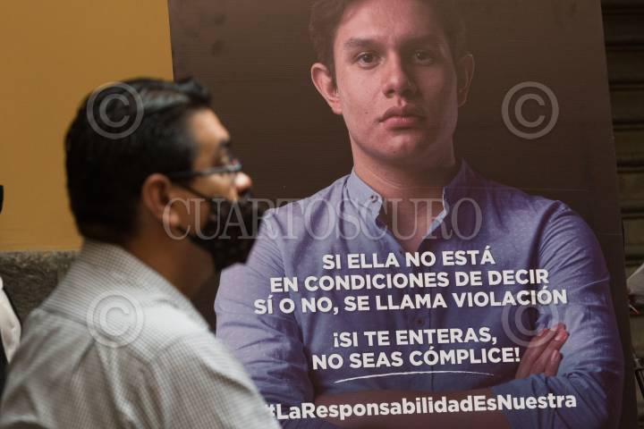 CIUDAD DE MÉXICO, 25NOVIEMBRE2021.- Claudia Sheinbaum, Jefa de Gobierno; Ernestina Godoy, Fiscal General de Justicia de la Ciudad de México; Salvador Guerrero Chiprés, presidente del Consejo Ciudadano para la Seguridad y Justicia de la Ciudad de México; Ingrid Gómez Saracíbar, titular de la Secretaría de las Mujeres; Laura Martínez Rodríguez, directora de la Asociación para el Desarrollo Integral de Personas Violadas A.C. (ADIVAC), y Mauro Antonio Vargas Urías, director general de Gendes, A.C., durante la presentación de la campaña contra la violencia sexual, "La Responsabilidad es Nuestra", realizada en el Palacio de la Autonomía de la UNAM. FOTO: MOISÉS PABLO/CUARTOSCURO.COM
