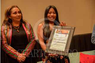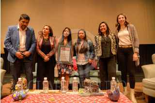 SAN CRISTÓBAL DE LAS CASAS, 25NOVIEMBRE2021.- Adriana Margarita López Sánchez, Yalitza Aparicio, Xóchitl Guadalupe Cruz López, Inés Huni, y Deliamaría González Flandez, participaron en la presentación del libro "Historias Mexicanas Chidas para Niñas Chidísima", en el Teatro Hermanos Domínguez. La publicación cuenta 60 historias de mujeres y niñas, entre las se encuentran Yalitza Aparicio, Xóchitl Guadalupe Cruz y Elena Poniatowska y es autoría de Huni y Luciana Biondo. FOTO: JOSÉ SANTÍZ/CUARTOSCURO.COM