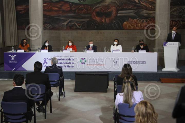 CIUDAD DE MÉXICO, 25NOVIEMBRE2021.- Arturo Zaldívar, presidente de la Suprema Corte de Justicia de la Nación acompañado de Yasmín Esquivel, ministra de la Suprema Corte de Justicia de la Nación, encabezaron el evento conmemorativo del Día Internacional de la eliminación de la violencia contra la Mujer. FOTO: ROGELIO MORALES /CUARTOSCURO.COM