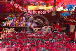 CIUDAD DE MÉXICO, 26NOVIEMBRE2021.- A partir de 23 de noviembre, habitantes de Puebla, Hidalgo, Michoacán y el Estado de México comenzaron la venta de flores de nochebuena, nacimientos, árboles de navidad y piñatas en la Romería Navideña de la Central de Abastos. Los comerciantes en su mayoría se quedan a dormir durante la temporada que termina entre el 22 y 24 de diciembre, dependiendo del término de su mercancía. FOTO: GRACIELA LÓPEZ /CUARTOSCURO.COM