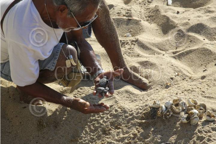 ACAPULCO, GUERRERO, 27NOVIEMBRE2021.- Un grupo de tortugas golfinas nació en la playa Condesa , las pequeñas tortugas fueron auxiliadas por un prestador de servicios turísticos, para que la mayoría llegarán al mar. FOTO: CARLOS CARBAJAL /CUARTOSCURO.COM