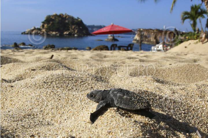 ACAPULCO, GUERRERO, 27NOVIEMBRE2021.- Un grupo de tortugas golfinas nació en la playa Condesa , las pequeñas tortugas fueron auxiliadas por un prestador de servicios turísticos, para que la mayoría llegarán al mar. FOTO: CARLOS CARBAJAL /CUARTOSCURO.COM