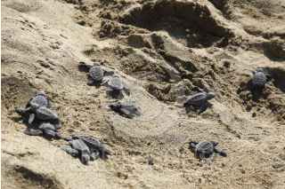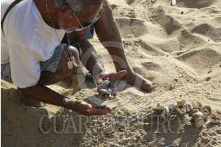 ACAPULCO, GUERRERO, 27NOVIEMBRE2021.- Un grupo de tortugas golfinas nació en la playa Condesa , las pequeñas tortugas fueron auxiliadas por un prestador de servicios turísticos, para que la mayoría llegarán al mar. FOTO: CARLOS CARBAJAL /CUARTOSCURO.COM