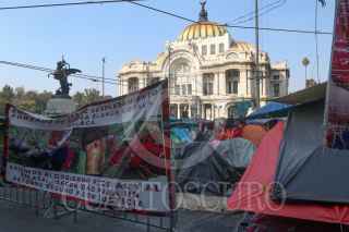 CIUDAD DE MÉXICO, 27NOVIEMBRE2021.- Desplazados triquis de Tierra Blanca, Oaxaca, mantienen un plantón desde el 26 de diciembre del 2020 después de que paralimitares armados con armas de fuego los despojaron de su comunidad. El 27 de julio del presente año, según versiones del Estado Mexicano, ya existían condiciones para un retorno seguro pero al tratar de ingresar a su pueblo el continente fue frenado nuevamente por paramilitares y nuevamente regresaron a mantener el plantón en Eje Central, enfrente de Palacio de Bellas Artes. La comunidad triquis exige un retorno seguro a Tierr Blanca, Oaxaca. FOTO: GRACIELA LÓPEZ /CUARTOSCURO.COM