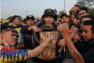 CIUDAD DE MÉXICO, 27NOVIEMBRE2021.- Aficionados de los Pumas de la UNAM y de las Águilas del América se dirigieron rumbo hacia el Estadio Azteca en donde ambas escuadras disputarán el partido de vuelta de los cuartos de final de la Liga MX Apertura 2021. FOTO: MARIO JASSO/CUARTOSCURO.COM