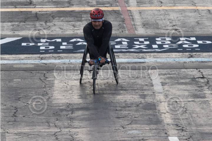 CIUDAD DE MÉXICO, 28NOVIEMBRE2021.- El colombiano Francisco San Clemente Pegado fue el ganador del Maratón de la Ciudad de México en la categoría de silla de ruedas. Detrás de él llegó el mexicano Martín Velasco. El tercer lugar fue para Gonzalo Valdovinos, también mexicano. FOTO: MOISÉS PABLO/CUARTOSCURO.COM
