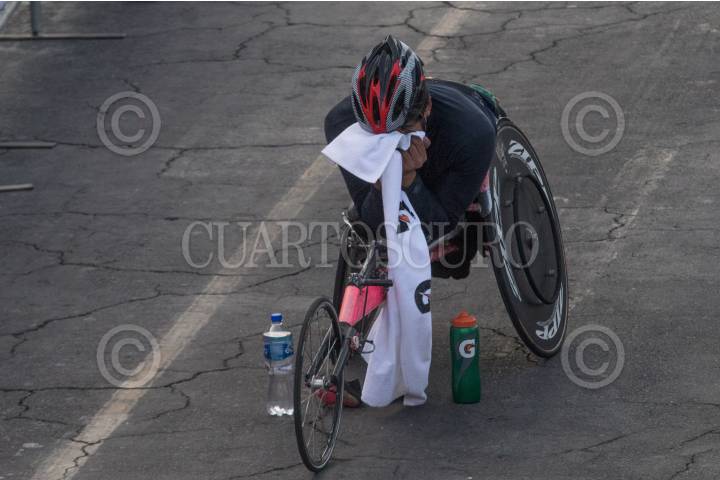 CIUDAD DE MÉXICO, 28NOVIEMBRE2021.- El colombiano Francisco San Clemente Pegado fue el ganador del Maratón de la Ciudad de México en la categoría de silla de ruedas. Detrás de él llegó el mexicano Martín Velasco. El tercer lugar fue para Gonzalo Valdovinos, también mexicano. FOTO: MOISÉS PABLO/CUARTOSCURO.COM