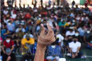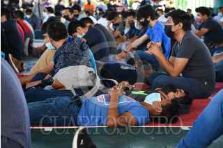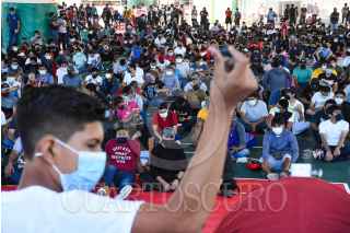 CAMPECHE, CAMPECHE, 28NOVIEMBRE 2021.- 2 mil 405 jóvenes acudieron al sorteo del Servicio Militar Nacional, conscriptos 2003 y remisos, en el sorteo se dispuso de 850 bolas blancas para quienes deberán prestar el Servicio Militar en la 33° Zona Militar, 705 bolas azules, para la III Región Naval de Lerma, y 850 bolas negras, que permanecerán a disposición del personal de la SEDENA. El evento se llevó a cabo en las canchas de la Unidad Deportiva 20 de Noviembre. FOTO: MICHAEL BALAM/CUARTOSCURO.COM