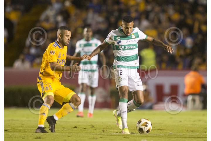 SAN NICOLÁS DE LOS GARZA, NUEVO LEÓN, 28NOVIEMBRE2021.- Los Tigres logran su pase a semifinales, después de derrotar con un de 1-0 a Santos en la vuelta de cuartos de final de la Apertura 2021. FOTO: GABRIELA PÉREZ MONTIEL / CUARTOSCURO.COM