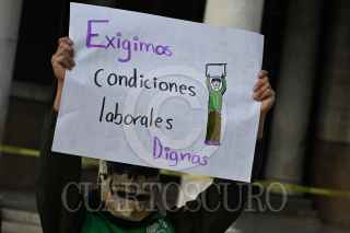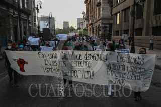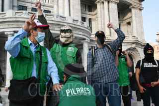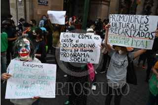 CIUDAD DE MÉXICO, 29NOVIEMBRE2021.- Beneficiarios del programa Pilares, el cual fue lanzado durante el actual gobierno de Claudia Sheinbaum, protestaron y marcharon rumbo al Zócalo de la capital para exigir derechos laborales, tales como un contrato y prestaciones acorde a la labor que realizan en cada uno de estos centros. FOTO: DANIEL AUGUSTO /CUARTOSCURO.COM