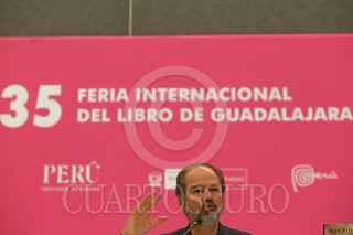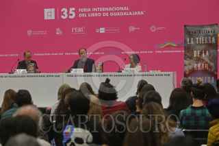 GUADALAJARA, JALISCO, 29NOVIEMBRE2021.- Juan Villoro escritor mexicano presento su libro “La Tierra de la Gran Promesa”, esto durante la edición 35 de la Feria Internacional del Libro de Guadalajara (FIL), que se lleva a cabo en Expo y en donde Perú es el país invitado de honor. FERNANDO CARRANZA GARCIA / CUARTOSCURO.COM