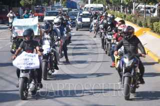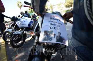 CHILPANCINGO, GUERRERO, 29NOVIEMBRE2021.- Un grupo de motociclistas se manifestó en calles de Chilpancingo para demandar justicia para uno de sus compañeros que perdió la vida tras el choque con un automóvil que circulaba en sentido contrario por los carriles de alta velocidad del boulevard Vicente Guerrero y por negligencia judicial se teme que la responsable quede libre. De acuerdo con lo relatado por los manifestantes Jorge Rodríguez Ávila fue asesinado la madrugada del pasado sábado, cuando una mujer que transitaba en sentido contrario y sin luces cuando lo arrolló. José Ángel Carballo Sánchez, quien fue amigo del hoy fallecido, indicó que era una persona sana, dedicada a su trabajo en el banco Banamex y que buscaba superarse estudiando la carrera de administración de empresas. Señaló que les han informado que la mujer podría salir libre, a pesar de que existe toda la agravante del accidente en su contra. Los motociclistas avanzaron por calles de la ciudad y llegaron hasta la Fiscalía General del Estado (FGE) donde pidieron que se aplique la ley de forma correcta, que no se permita que con argucias legales o por influencias se libere a esta persona que claramente generó el homicidio. FOTO: DASSAEV TÉLLEZ ADAME/CUARTOSCURO.COM