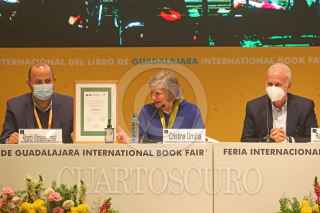 GUADALAJARA, JALISCO, 29NOVIEMBRE2021.- Cristina Urrutia socióloga mexicana, recibió el Homenaje al Merito Editorial”, esto durante la edición 35 de la Feria Internacional del Libro de Guadalajara (FIL), que se lleva a cabo en Expo y en donde Perú es el país invitado de honor. FERNANDO CARRANZA GARCIA / CUARTOSCURO.COM