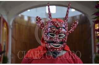 MAZATÁN, CHIAPAS, 30NOVIEMBRE2021.- Heron Villalobos Victorio, es originario del municipio, lleva 74 años fortaleciendo la tradición del baile de los enmascarados en el marco de la celebración de la Virgen Margarita Concepción, “según nosotros esta tradición surge desde que apareció la virgen, pero no hay un dato exacto que corrobore esa creencia. Como familia, mi madre la realizó durante 40 años, tu servidor 34 años". La máscara del diablo está construida del corazón del cedro. “Tenemos la máscara que utilizó la primera persona que personificó al diablo, como reliquia” “Queremos que nuestros familiares sigan preservando esta bonita costumbre y tradición”. Esto es parte de a cultura de un pueblo, añadió. FOTO: DAMIÁN SÁNCHEZ /CUARTOSCURO.COM