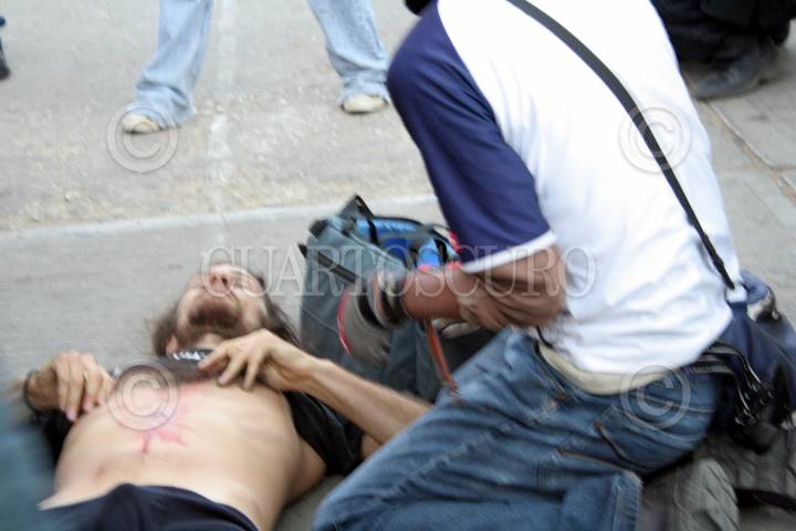 SANTA LUCIA DEL CAMINO, OAXACA 27OCTUBRE2006.- Los miembros de la APPO se cubren de las ráfagas después de recibir varios disparos. Un reportero gráfico, al parecer extranjero, murió como resultado de un balazo que recibió durante uno de los tiroteos registrados en la comunidad de Calicante. FOTO: JAVIER AMAURY GUADARRAMA /CUARTOSCURO.COM
