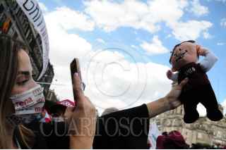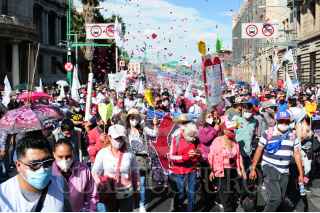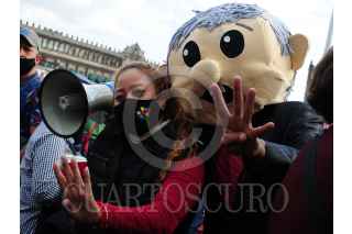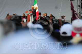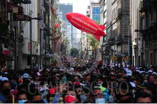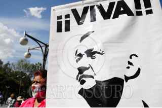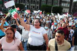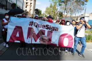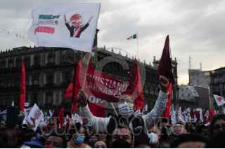 CIUDAD DE MÉXICO, 01DICIEMBRE2021.- Previo a llevarse a cabo la celebración por el tercer año del triunfo de Andrés Manuel López Obrador para la presidencia de México, seguidores del dirigente comienzan a llegar al Zócalo capitalino en medio de pancartas y porras a favor del tabasqueño. FOTO:DANIEL AUGUSTO /CUARTOSCURO.COM