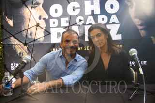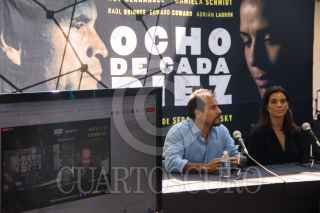 CIUDAD DE MÉXICO. 01DICIEMBRE2021.- Los protagonistas de la película "Ocho de Cada Diez", Noé Hernández y Daniela Schmidt en conferencia de prensa anunciaron el estreno de la cinta, el próximo 9 de diciembre. El director y guionista, Sergio Umansky; estuvo presente via remota. FOTO: VICTORIA VALTIERRA/CUARTOSCURO.COM