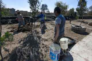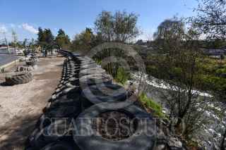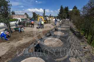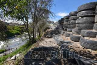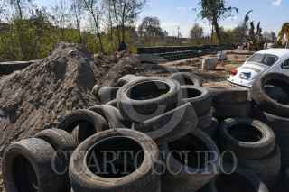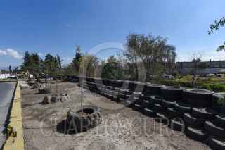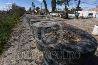 TOLUCA, ESTADO DE MÉXICO, 01DICIEMBRE2021.- Vecinos de San Pablo Autopán, delegación de Toluca, rehabilitaron un predio que era utilizado como tiradero de basura a un costado del Río Tejalpa, lo que es conocido como el puente de la Paz, con la visión de convertirlo en un lugar de recreación y reunión de las familias limpiaron el predio y dieron una nueva utilidad a neumáticos usados, con los cuales se construyó una pared y se encuentro sembrando árboles de distintas especies, este proyecto local llevará el nombre de “Parque recreativo y cultural de Paz”. FOTO: CRISANTA ESPINOSA AGUILAR /CUARTOSCURO.COM