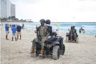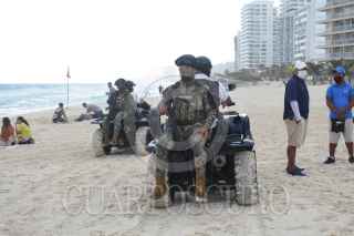 CANCÚN, QUINTANA ROO, 01DICIEMBRE2021.- Iniciaron operaciones el batallón de Seguridad Turística de la Guardia Nacional con aproximadamente 400 elementos. Elementos de la Marina patrullaron las playas a bordo de cuatrimotos para salvaguardar la seguridad de los turistas. FOTO: ELIZABETH RUIZ/CUARTOSCURO.COM
