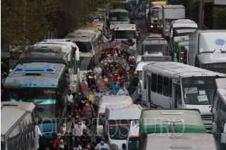 CIUDAD DE MÉXICO, 01DICiEMBRE2021.- Debido a la convocatoria para presenciar el informe de Andrés Manuel López Obrador, presidente de México a 3 años de su victoria, cientos de personas abarrotaron con camiones, camionetas y carros las principales vialidades que tienen como destino la Plancha del Zócalo Capitalino. FOTO: ROGELIO MORALES /CUARTOSCURO.COM
