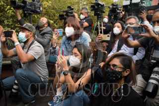 CIUDAD DE MÉXICO, 01DICIEMBRE2021.- Ainara la joven que fue violada y videograbada y por la cual una influencer fue a prisión, ofrecio una rueda de prensa esta tarde y estuvo acompañada de su aboigado Javier Shutte y Samantha Cerisola. FOTO: VICTORIA VALTIERRA /CUARTOSCURO.COM