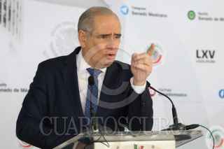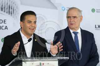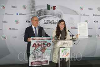 CIUDAD DE MÉXICO, 02DICIEMBRE2021.- Los senadores Julen Rementeria, Kenia López Rabadan y Damián Zepeda de la bancada del PAN, ofrecieron una conferencia de prensa en la que informaron que el INE aprobó que la propaganda para la revocación de mandato de Andrés Manuel López Obrador, presidente de México, sea quitada en las calles y redes sociales en 12 horas. El acto se realizó en el Patio del Federalismo. FOTO: GRACIELA LÓPEZ /CUARTOSCURO.COM
