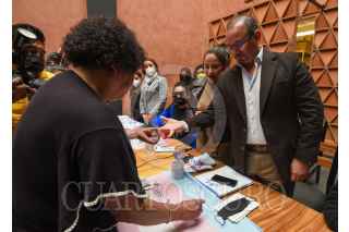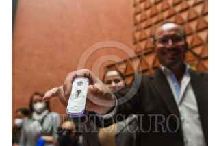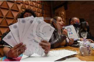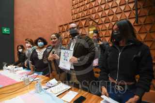 TOLUCA, ESTADO DE MÉXICO, 02DICIEMBRE2021.- Karen Quiroga, Secretaria de Igualdad de Géneros del PRD, Omar Ortega Álvarez, Diputado local y Coordinador de la bancada del PRD, acompañados por activistas trans, presentaron las conclusiones del Primer Congreso Nacional Trans del PRD en donde se hizo un llamado para realizar una Ley Integral que atienda los Derechos Humanos de la Comunidad Trans. Al término del evento se aplicaron una prueba de VIH como una muestra de prevención de salud pública. FOTO: CRISANTA ESPINOSA AGUILAR /CUARTOSCURO.COM
