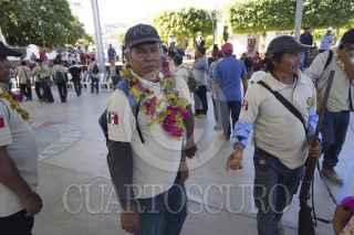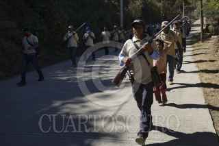 OLINALÁ, GUERRERO. 02DICIEMBRE2021. El día de hoy, se cumplieron nueve años del nacimiento de la PCP en Temalacatzingo, municipio de Olinalá, policía comunitaria que logró erradicar la violencia en el pueblo, que busca actualmente ser parte de los cuatro nuevos municipios de Guerrero. Decenas de policías ciudadanos, la mayoría de pueblos indígenas nahuas, marcharon desde la entrada de Temalacatzingo, hacia el centro del poblado, donde se realizó un evento. Con un ritual ancestral, autoridades del pueblo agradecieron la labor de la PCP, que ha logrado extender su territorio a otros municipios como Cualác y Huamuxtitlán. A inicios del 2012, Temalacatzingo vivió semanas de tensión, cuando presuntos criminales acechaban al pueblo ocasionando una muerte y asaltos. Es por ello, que Temalacatzingo inició el proyecto una policía ciudadana, regida por el pueblo y que ocho años de su nacimiento, lograron erradicar la violencia en su totalidad. FOTO: JUAN JOSÉ ESTRADA SERAFÍN /CUARTOSCURO.COM
