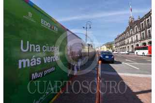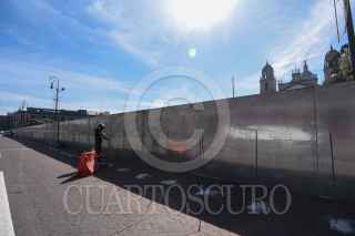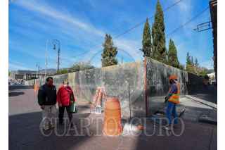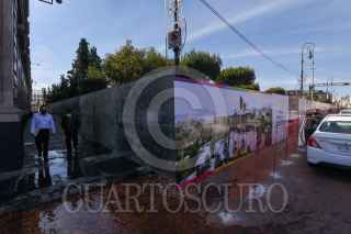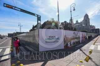 TOLUCA, ESTADO DE MÉXICO, 03DICIEMBRE2021.- La Plaza de los Mártires en Toluca luce totalmente cercada por vallas metálicas para poder iniciar los trabajos de remodelación y convertirlas en una zona verde, desapareciendo la plancha de concreto que la caracterizaba. FOTO: CRISANTA ESPINOSA AGUILAR /CUARTOSCURO.COM